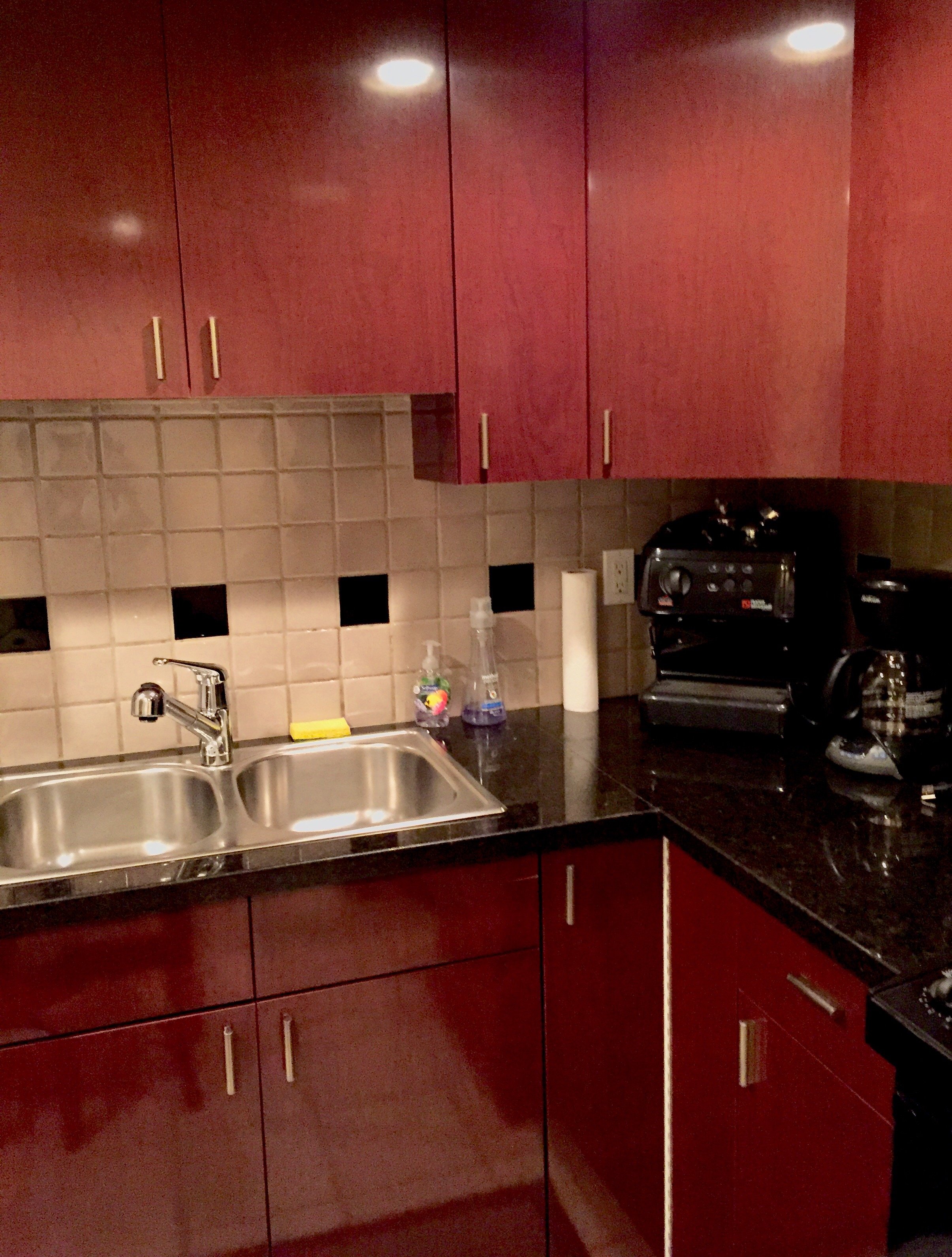 It’s a fifteen minute journey to Yaletown-Roundhouse where we emerge into torrential rain. We manage to find the 7-11 where our apartment keys are being held (this Keycafe thing is great) and then juggle the suitcases with a photograph of a Google map to locate our destination. We have a slight tussle with a non suitcase friendly barrier but otherwise we soon find our studio apartment and home for the next three days. As a bonus, I receive a message from our host suggesting that we stay on at the apartment until 7pm on Tuesday so we don’t have to worry about finding left luggage facilities.