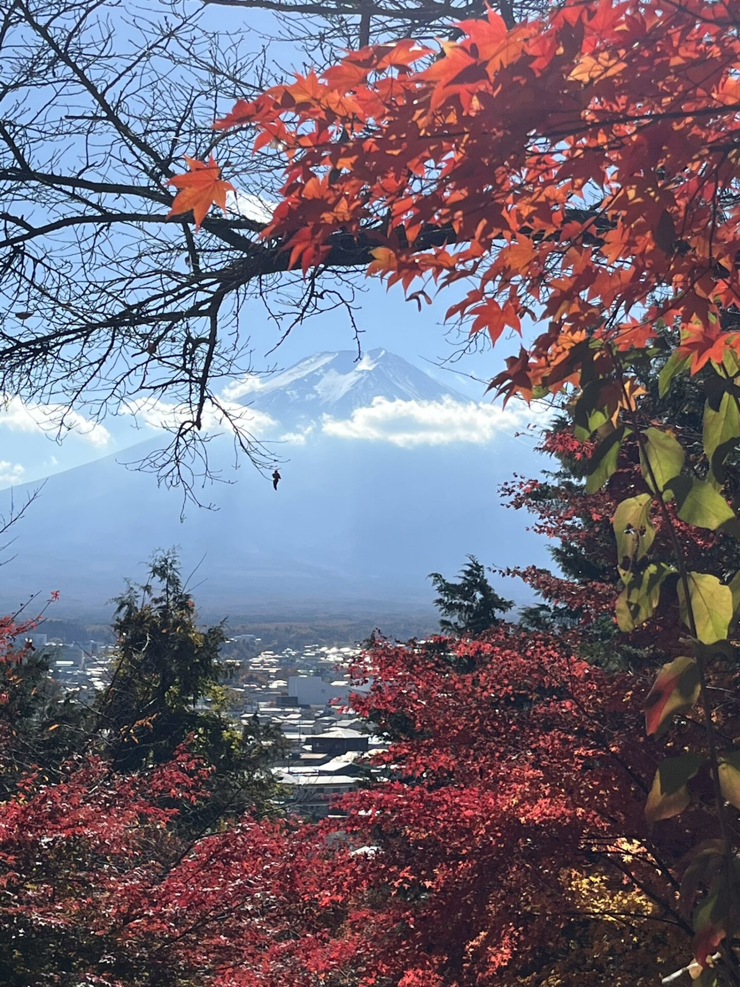 My obsession with checking the webcams and visibility website has more than paid off. It’s a beautiful day, with sunshine, blue skies and not a cloud in sight, even at Mt Fuji’s peak. There had even been the first snowfall of the season a few days before, meaning she looked exactly like that emoji 🗻. This was the view I had been hoping so desperately to see. I may even have cried a little.