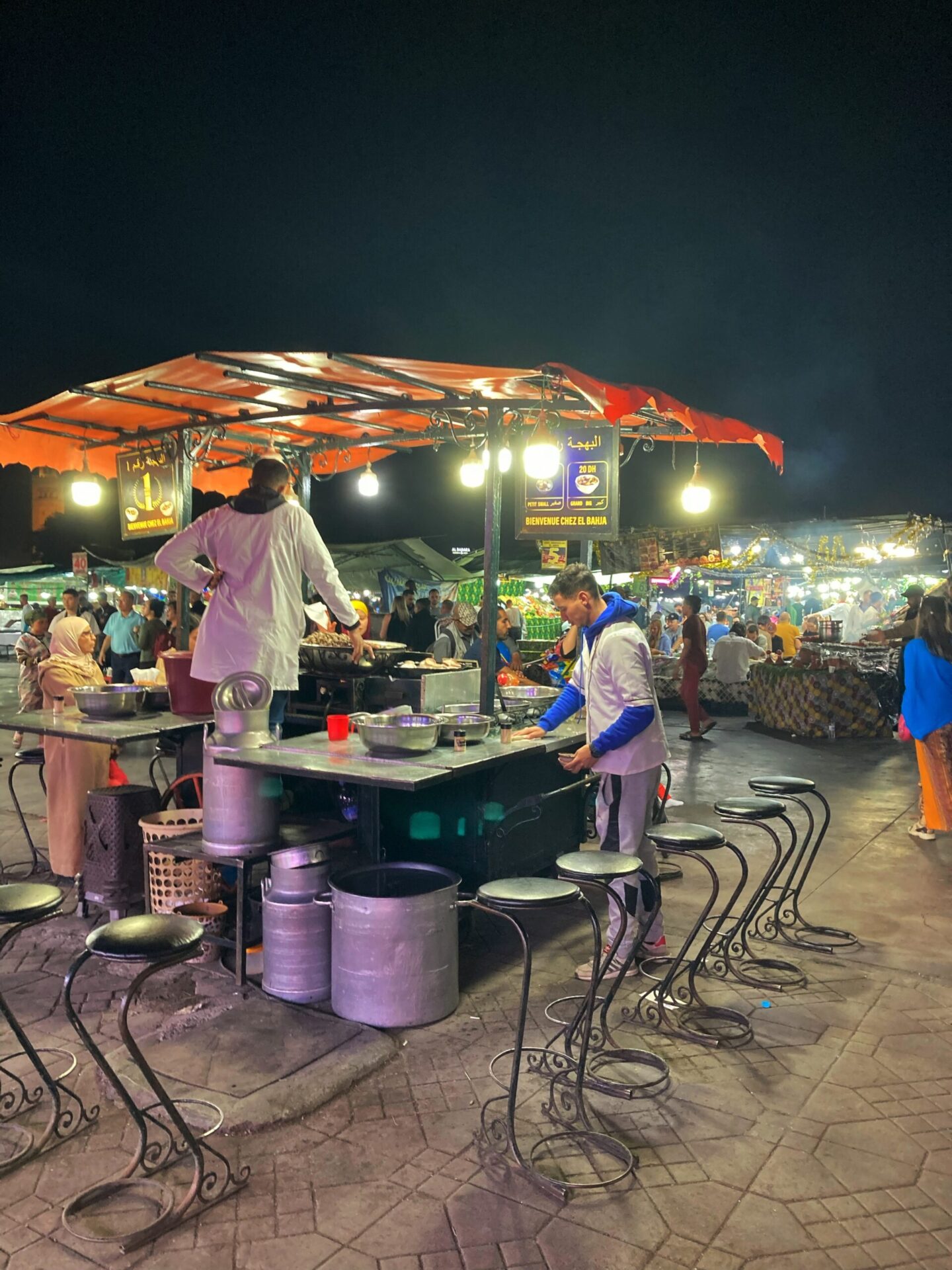 Nightfall brings a different side to Marrakech. Restaurants and market stalls typically stay open later, the scent of mint tea and fresh pastries permeating the air. Night markets buzz with energy. Streets fill with celebration. The area surrounding Koutoubia mosque is bustling with evening prayer. Daytime reflection makes way for gatherings, laughter and chatter amongst family and friends until the early hours.