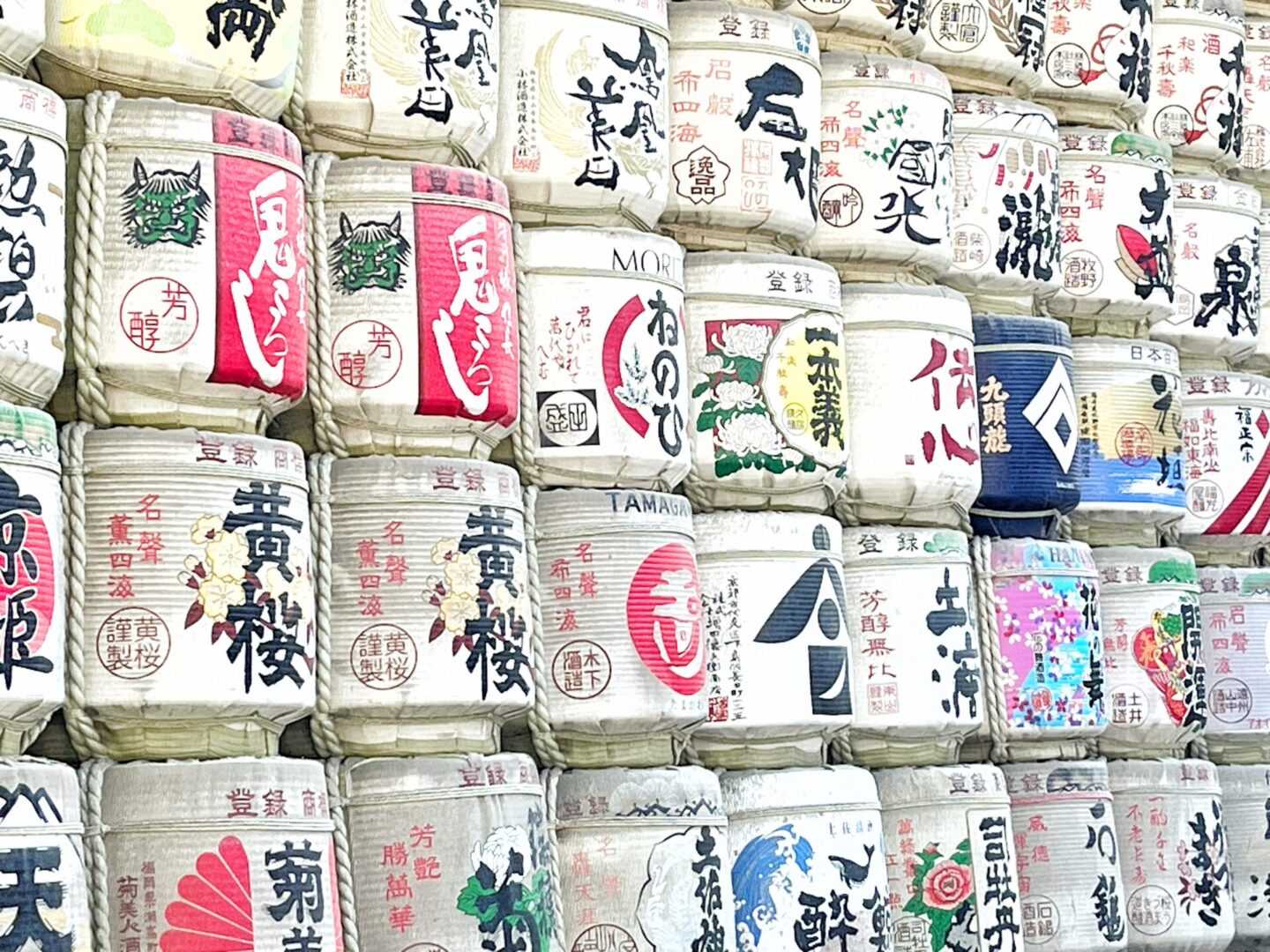 It’s a complete contrast to the noise and neon of Shinjuku. There are a few other people strolling around – probably jetlagged travellers like ourselves – but it’s surprisingly peaceful at 9am. Tree-lined pathways wind towards Meiji Jingu, a Shinto shrine built to commemorate the legacy of Emperor Meiji and Empress Shoken. Walls of decorative sake and French wine barrels line the gravel path on approach to the shrine, offerings to the enshrined Gods.