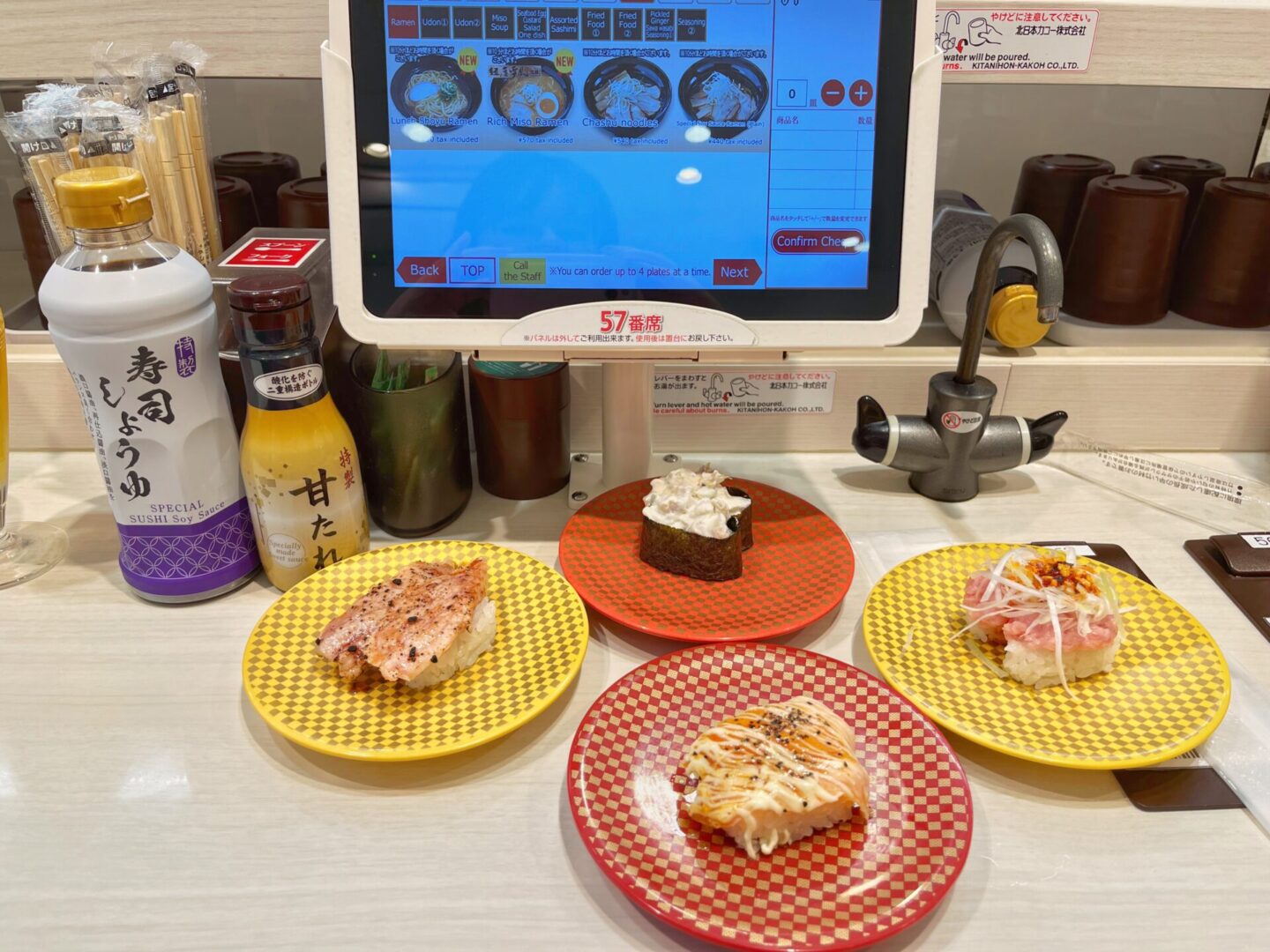 It’s definitely time for lunch now. Conveyor belt sushi is on my to-do (or to-eat) list. A quick Google Map search and we’re standing outside Uobei Shibuya. We’re each given a unique QR code and we’re assigned a seat. There’s a dazzling array of sushi on the tablet menu in front of us; I take a bit of a pot luck approach and hope I can catch my dishes as they whizz past. I envision a pile of sushi on the floor at the end of the conveyor belt. Turns out that the dishes do actually stop right in front of you. At the end of the meal, we simply take our QR Codes to the cashier to pay.