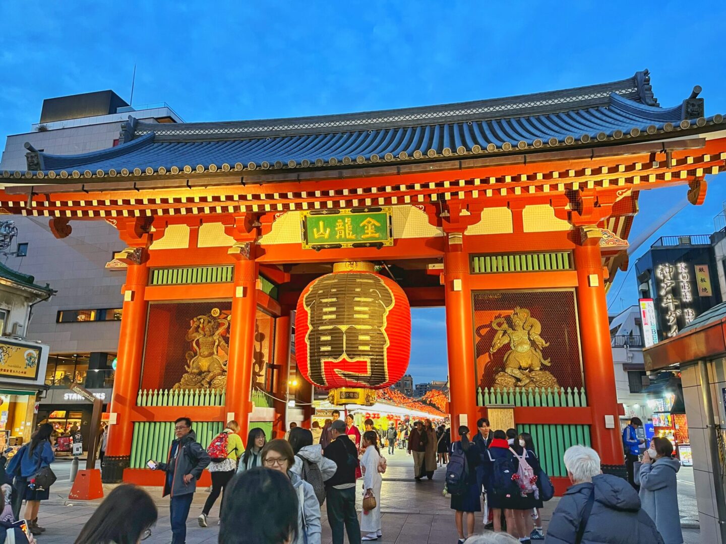 The famous Kaminarimon gate is a stoneβs throw away from the Visitors Centre. This is the busiest place we’ve encountered so far in Tokyo by far. In fact it’s hard to even see the shops and stalls lining Nakamise-dori. It’s just before 5pm on this November evening; I can only imagine how busy this famous stretch leading up to Senso-ji gets in the daylight. A quick stroll off the main stretch though reveals almost empty streets, little oases of peace.