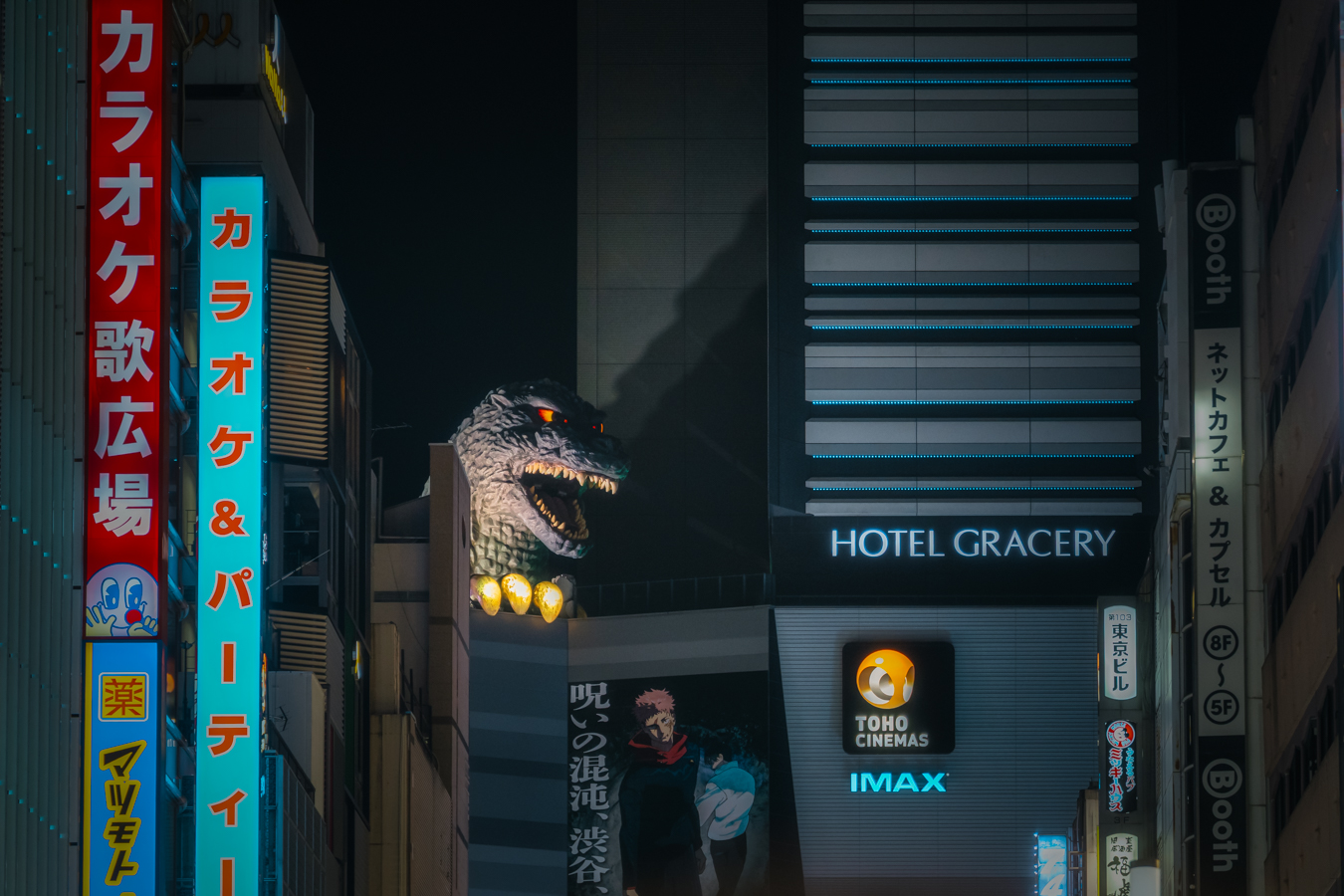 Hunger sated, and still trying to stave off the urge to sleep, we head deeper into Shinjuku. We find ourselves in the infamous KabukichΕ area, where lots of pretty young ladies are politely offering their services. However Shinjuku’s red-light district does have plenty of other sights, including the giant Godzilla Head which tops the Toho Cinema.